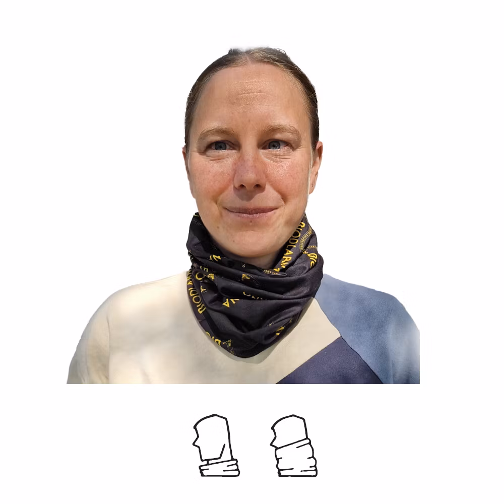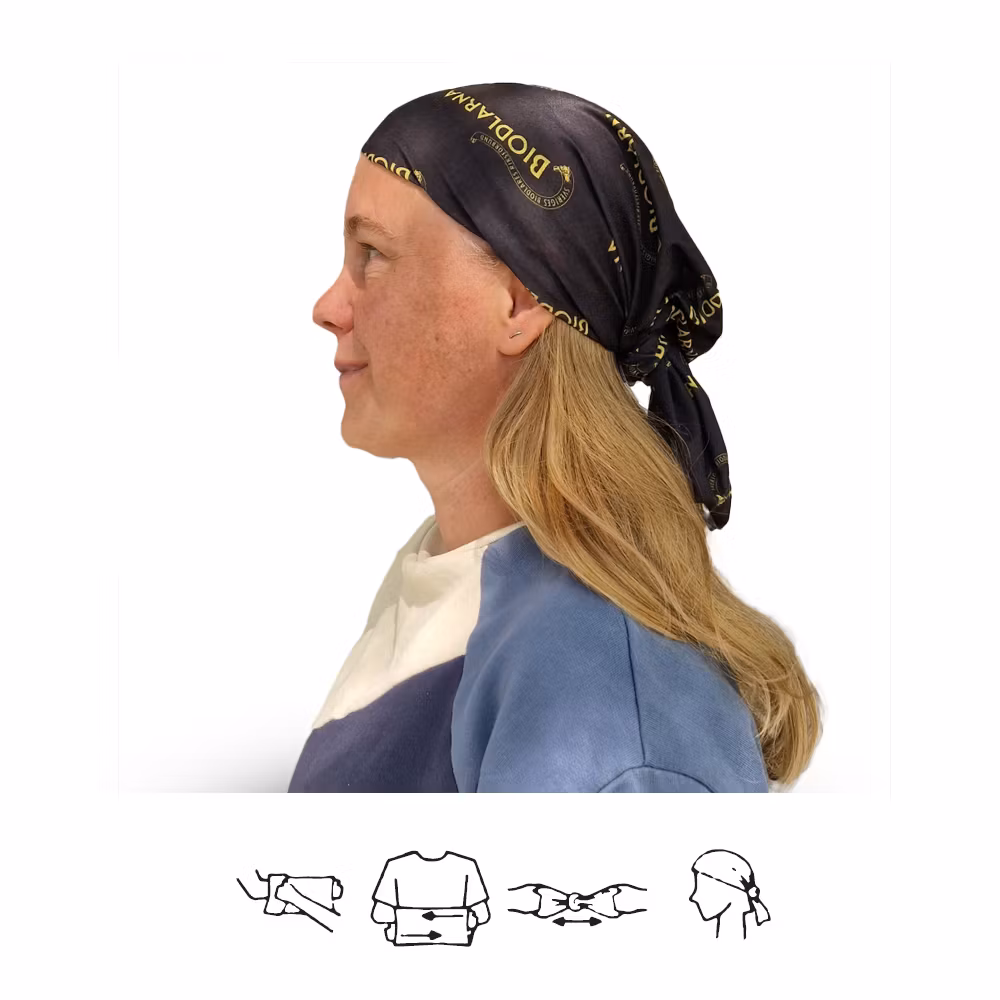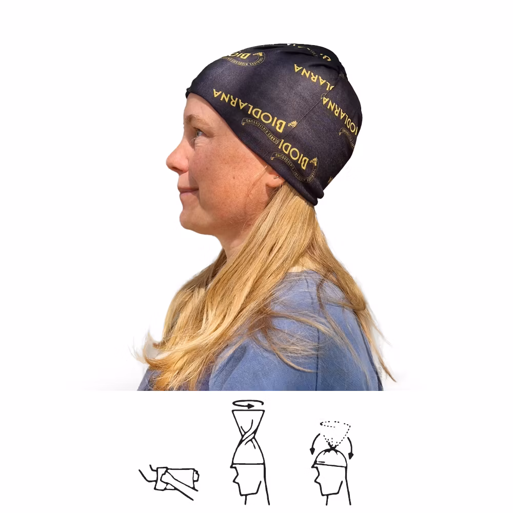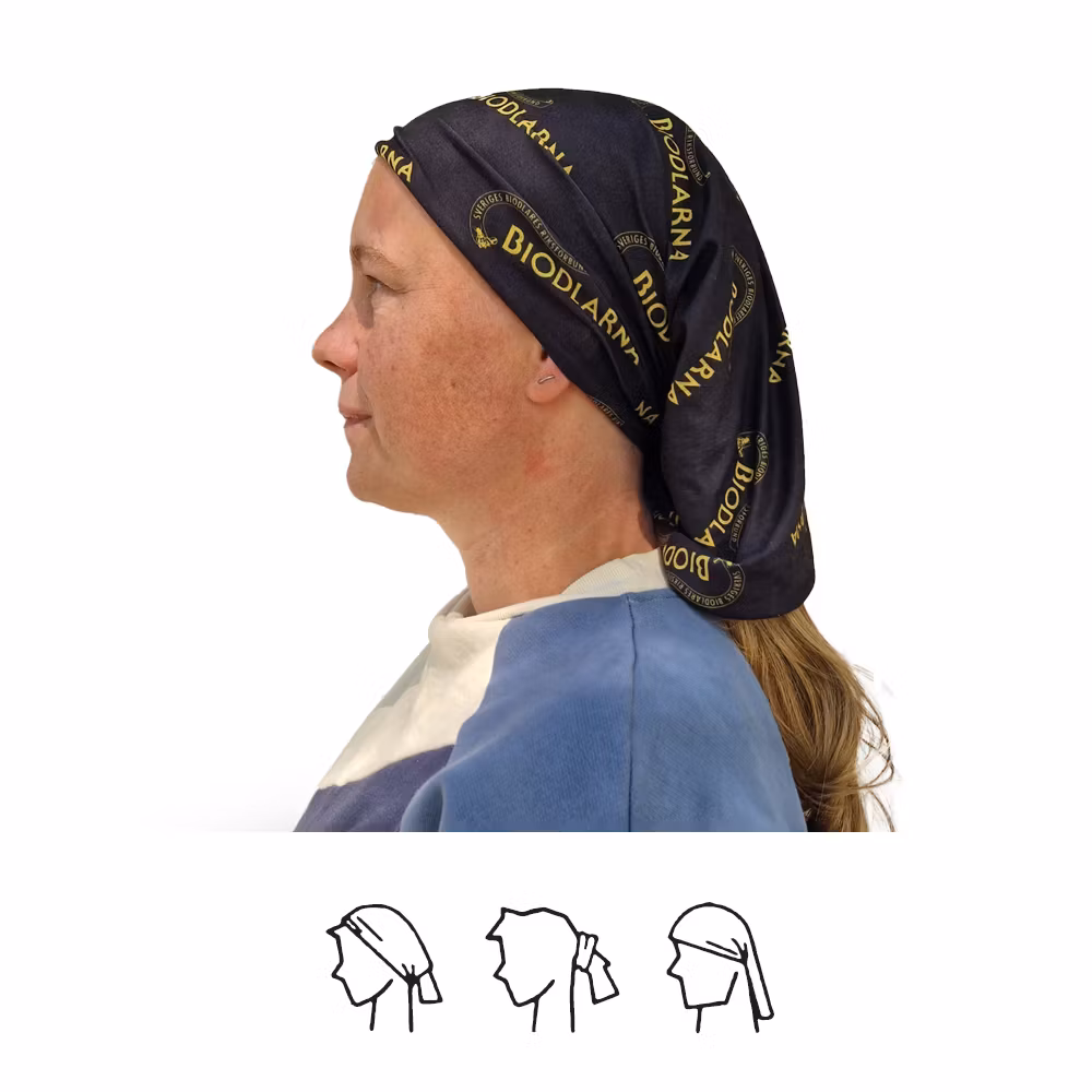 Bandana / tub med biodlarnas logotyp. Multifunktionsplagg med massor av funktioner.